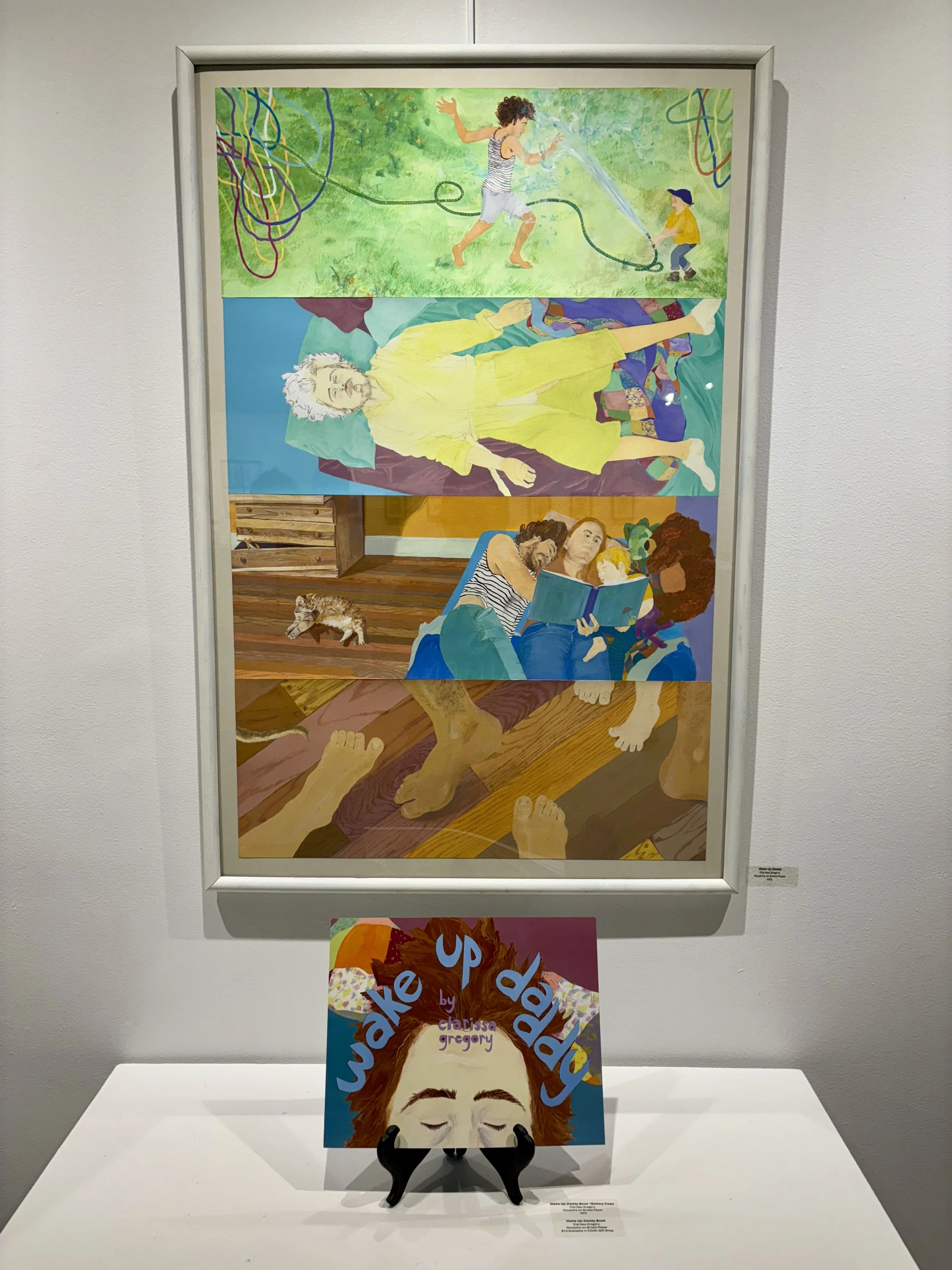Wake up Daddy (pgs 13-14 “Daddy’s not playing, Daddy’s mean”), 2019-22, Gouache on bristol paper. “Wake up Daddy” is a graphic picture book tackling adult subjects: anxiety, insomnia, depression—from which Clarissa’s husband and co-parent suffers. Within a family, everyone lives in the haunted house of mental illness.