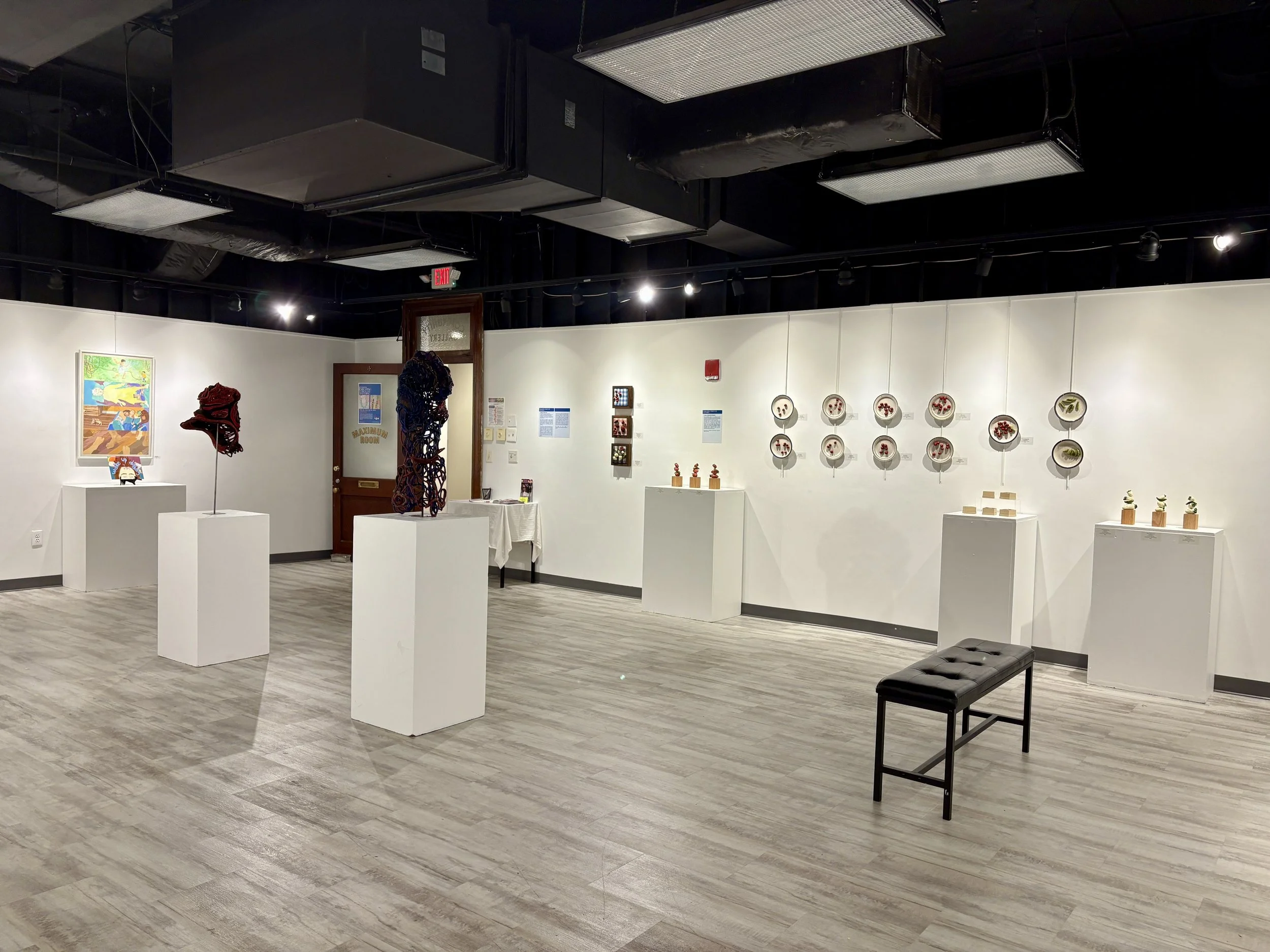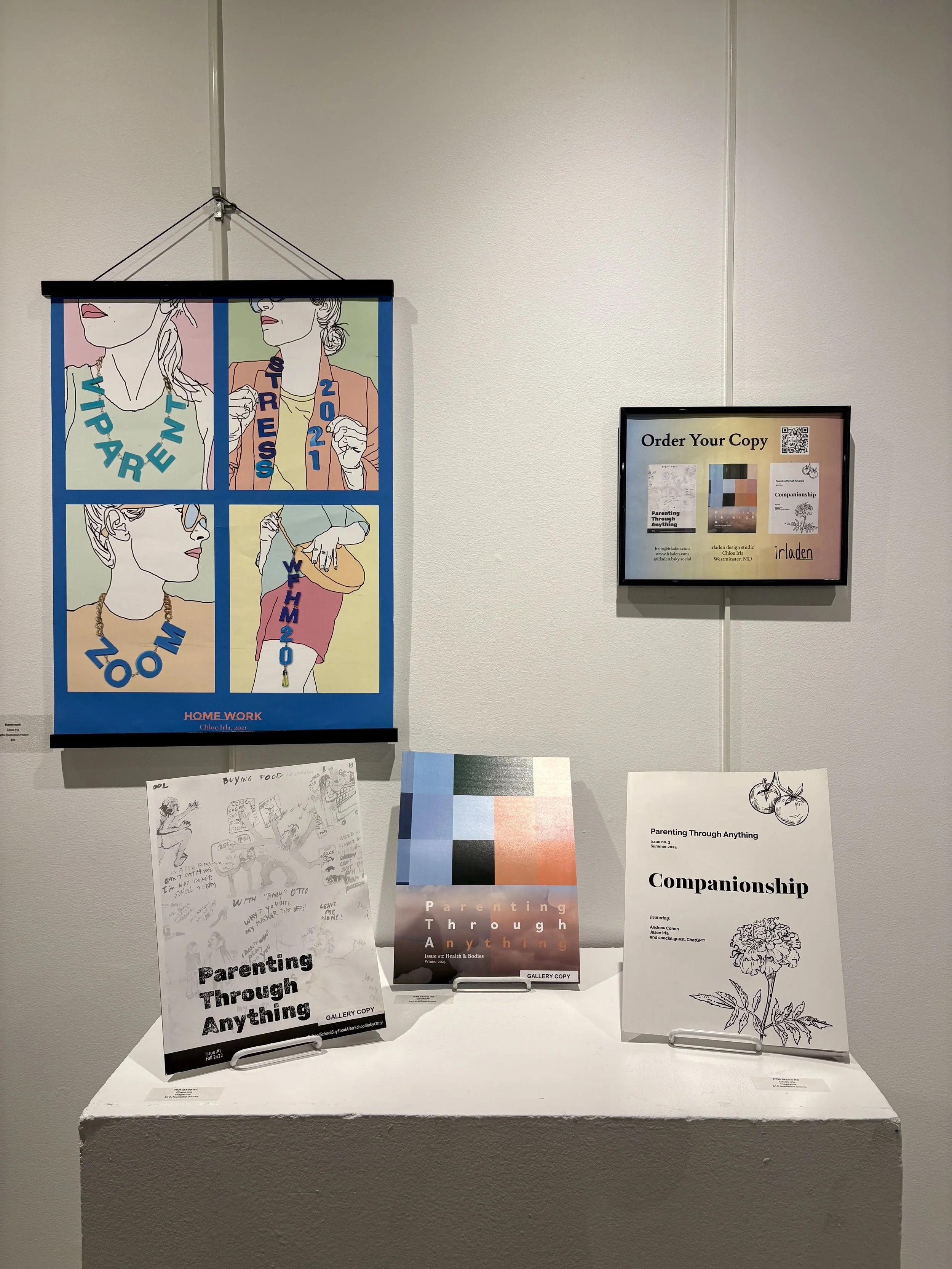 In summer 2025, Parenting Through Anything: The Exhibition was hosted at the Carroll Arts Center in Westminster, MD! The exhibition included works by five artists featured in the first two issues of PTA: Lara Emmerling Grace, Clarissa Gregory, Chloe Irla, Nicole Buckingham Kern, and Stephanie Madsen.