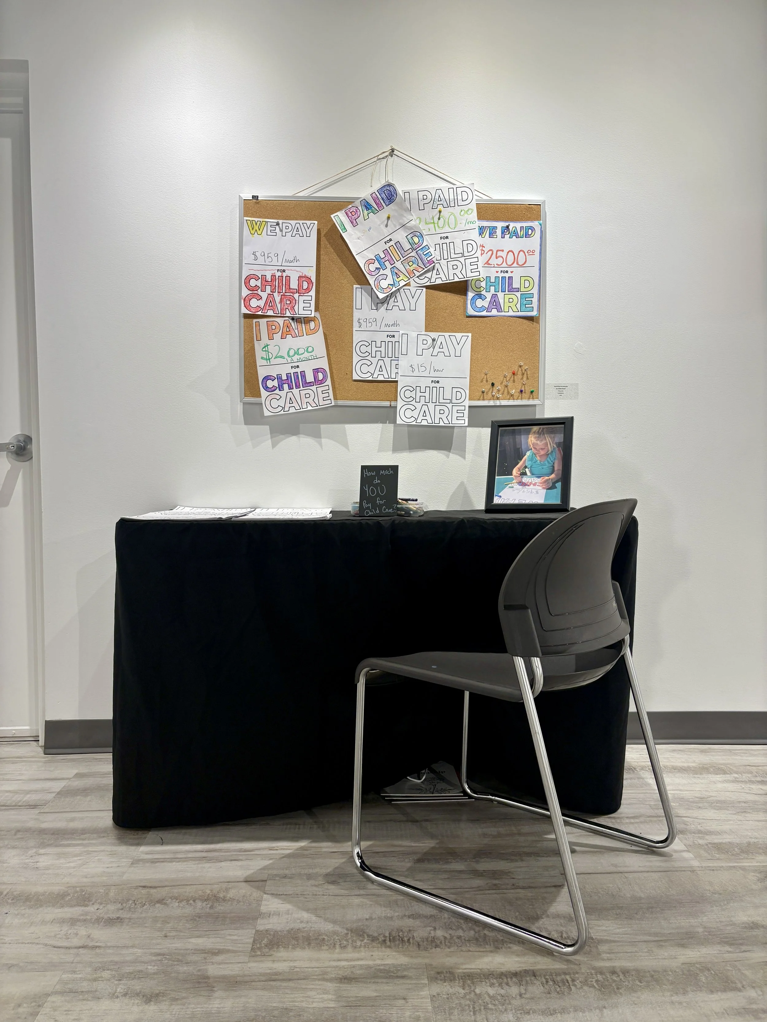 "How Much Do You Pay For Child Care?" Installation by Chloe Irla