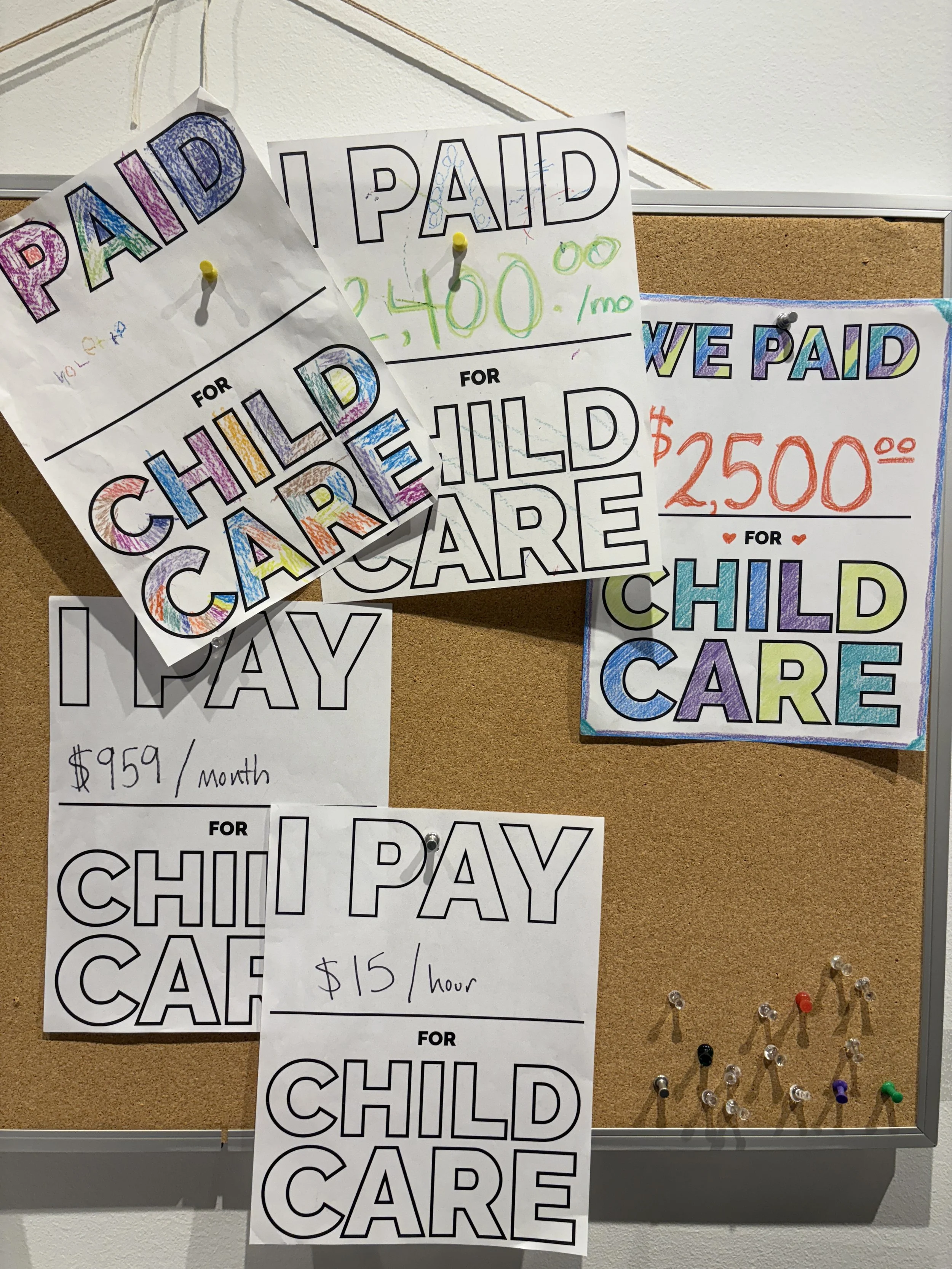 "How Much Do You Pay For Child Care?" Installation (detail)